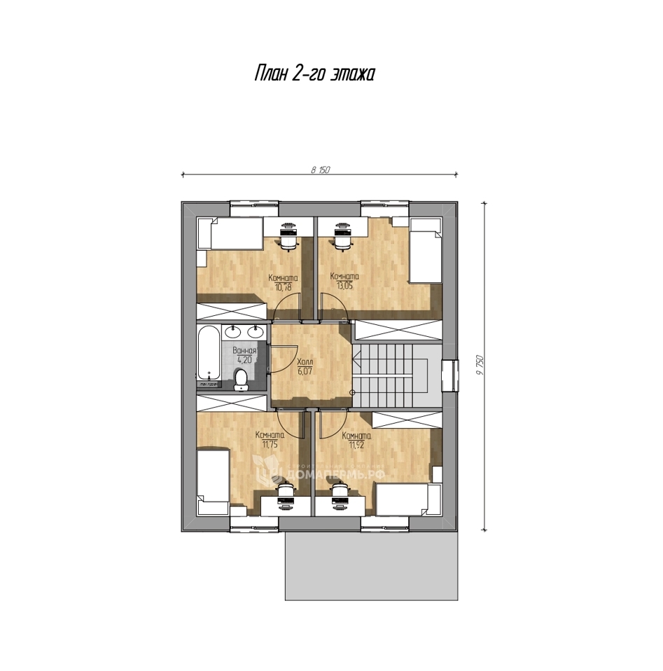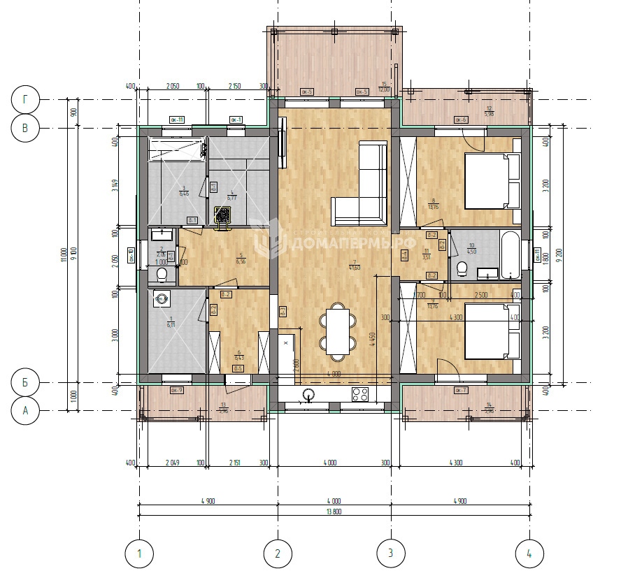 Особенности: – адаптация под климат Пермского края – экологичные материалы и противопожарная защита – продуманная теплоизоляция и комфортная высота потолков – возможны индивидуальные изменения планировки