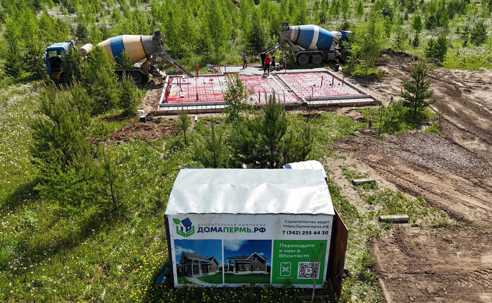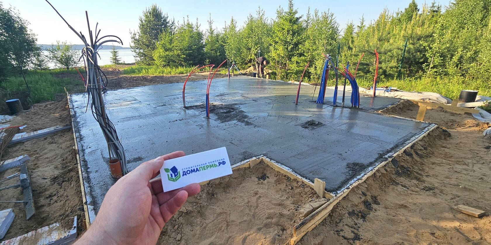 Включены: земляные работы, подбетонка, утепление, армирование, бетонирование, монтаж закладных под инженерные сети (канализация, вода, электричество)