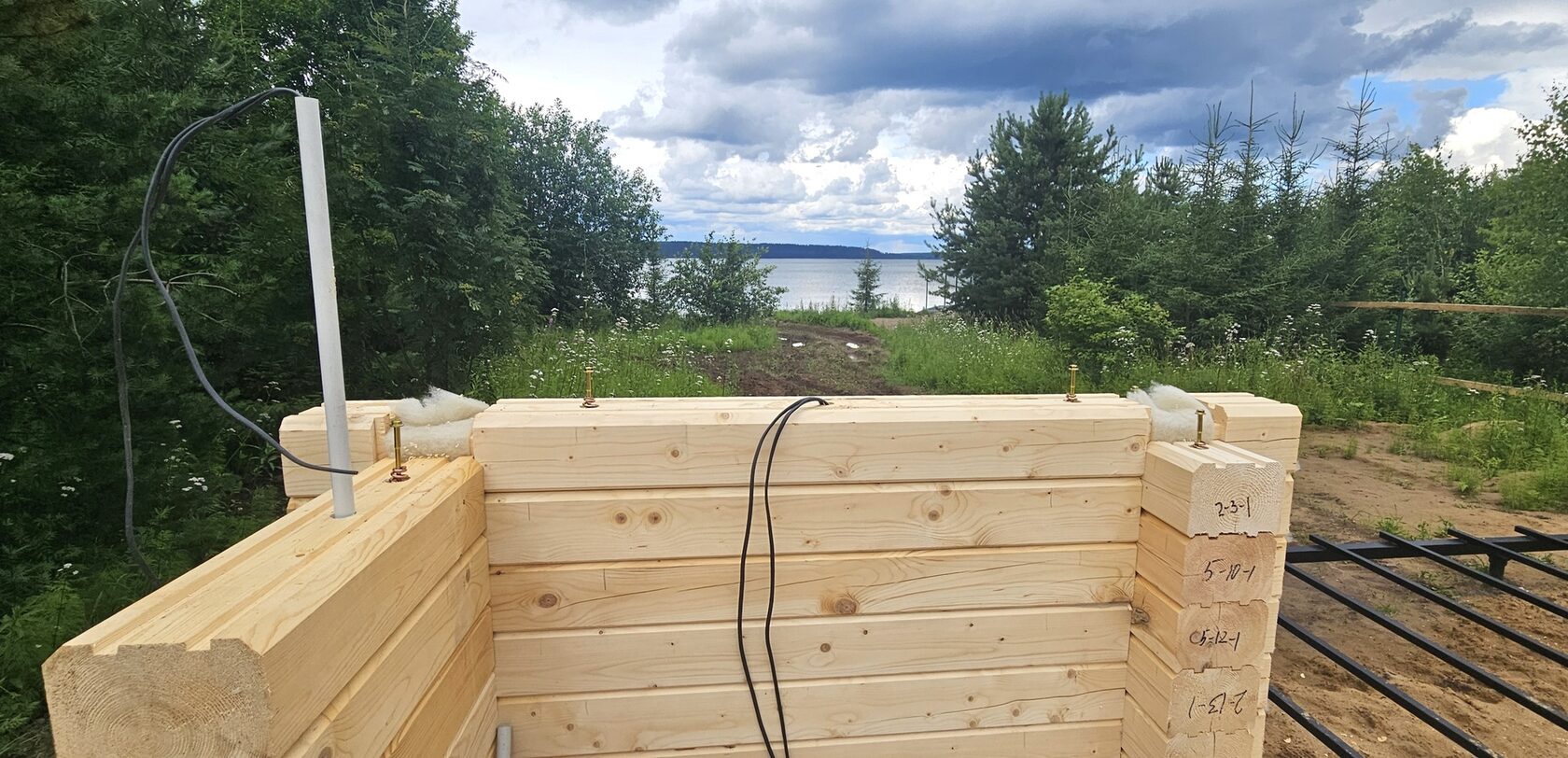 Стены: профилированный брус камерной сушки, сборка с учетом усадки (1–3%)