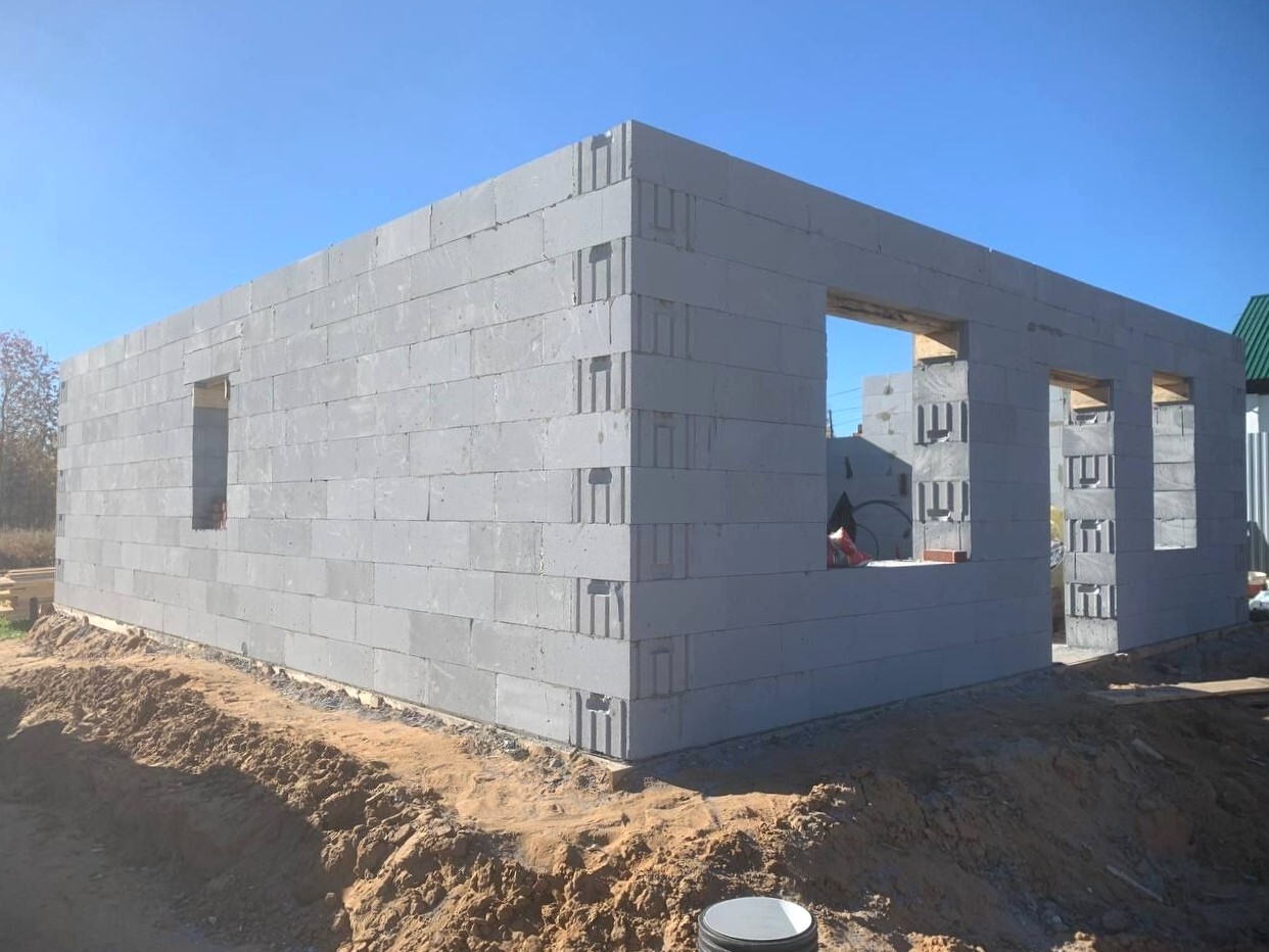 Стены: несущие и перегородки из газобетона, утепление наружных стен по фасаду